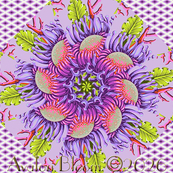 Dive into an underwater fantasy that captures the magic of ocean life, where blooming anemones and flowing coral forms create a lush, aquatic “floral” design that feels both whimsical and bold. Set against a radiant lavender background that features intricate sea-inspired blooms and organic shapes that mimic underwater gardens, no snorkeling required. The design comes alive with a striking palette of hot pink, coral, soft blush, violet, bright citrine green and hints of citrus tones, on a lavender background creating high contrast and visual movement . These layered colors give the fabric a glowing, almost neon effect that’s signature to Tula Pink’s imaginative style perfect for kaleidoscope quilting. The fabric is Floral Reef Friends & Anemones in Ultraviolet from Tula Pinkfor Free Spirit Fabrics. The pattern is PWTP265 color Ultraviolet.