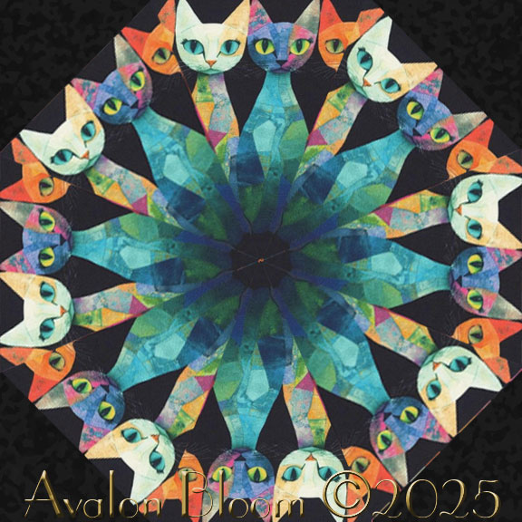 Stylish, charming, and irresistibly cute—this fabric truly lives up to its name: Picture Purrfect. Let these photogenic kitties inspire your next creative masterpiece. Set against a deep black background, this playful yet elegant print features beautifully illustrated cats, each posing in picture-perfect fashion. Their expressive faces and soft fur detailing, create a whimsical gallery of personality and charm. Sophisticat Picture Purrfect by Timeless Treasures Fabrics. The colors include, turquoise, blue, purple, violet, yellow, tangerine and fuchsia on a black background, perfect for kaleidoscope quilting.The fabric is Picture Purrfect from the Sophisticat Collection, Timeless Treasures Fabrics, Pattern CAT-CD4005 color BLACK. Finished dimension for all blocks sewn together is 24 X 32 inches. Each block measures 8 1/2 inches square when sewn. Our Fast and Easy Blooming Blocks© are cut from 100 percent cotton fabric. Each block in the set will be uniquely different due to layering the fabric in exact repeats to create a kaleidoscope effect by precisely rotary cutting them.They are specially cut so that the centers will lie flatter and so there is no bias on the edges of the block so they lie flat in your quilt. You can put these blocks together in a quilt in different ways. Illustrated instructions included to complete the blocks that even a beginner can understand as well as bonus instructions for dimensions to include these blocks in a King, Queen, Double, Twin or Baby Crib, wall hanging quilt as well as a Table Runner or Placemats.