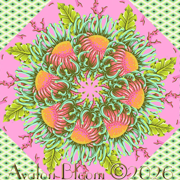 Dive into an underwater fantasy that captures the magic of ocean life, where blooming anemones and flowing coral forms create a lush, aquatic “floral” design that feels both whimsical and bold. Set against a radiant coralline pink background that features intricate sea-inspired blooms and organic shapes that mimic underwater gardens, no snorkeling required. The design comes alive with a striking palette of hot pink, coral, soft blush, aqua, turquoise, violet, and hints of citrus tones, creating high contrast and visual movement . These layered colors give the fabric a glowing, almost neon effect that’s signature to Tula Pink’s imaginative style perfect for kaleidoscope quilting. The fabric is Floral Reef Friends & Anemones in Coralline from Tula Pinkfor Free Spirit Fabrics. The pattern is PWTP265 color CORALLINE.